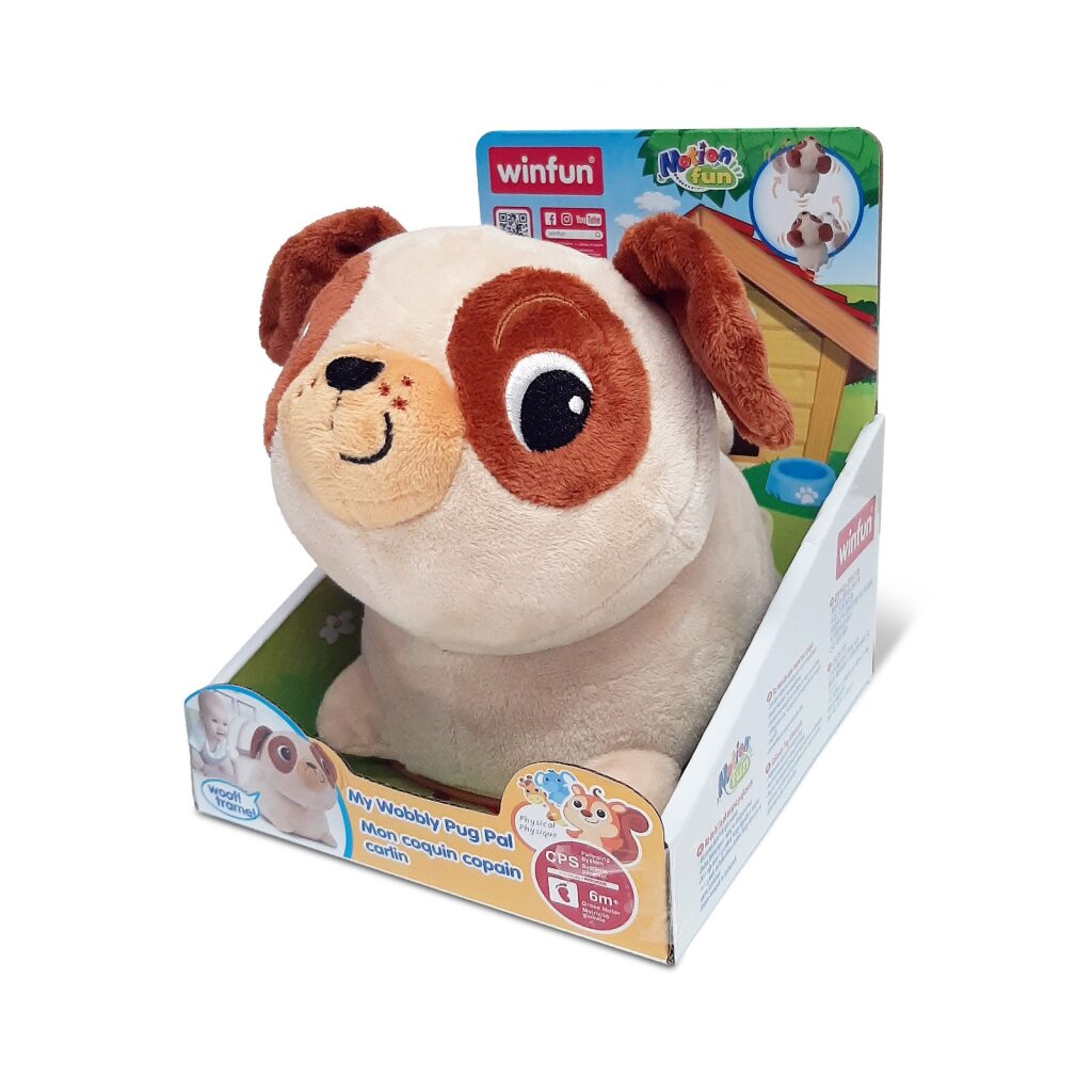 - Bouton à activer pour regarder le chien bouger, encourage le bébé à le suivre pour un jeu actif