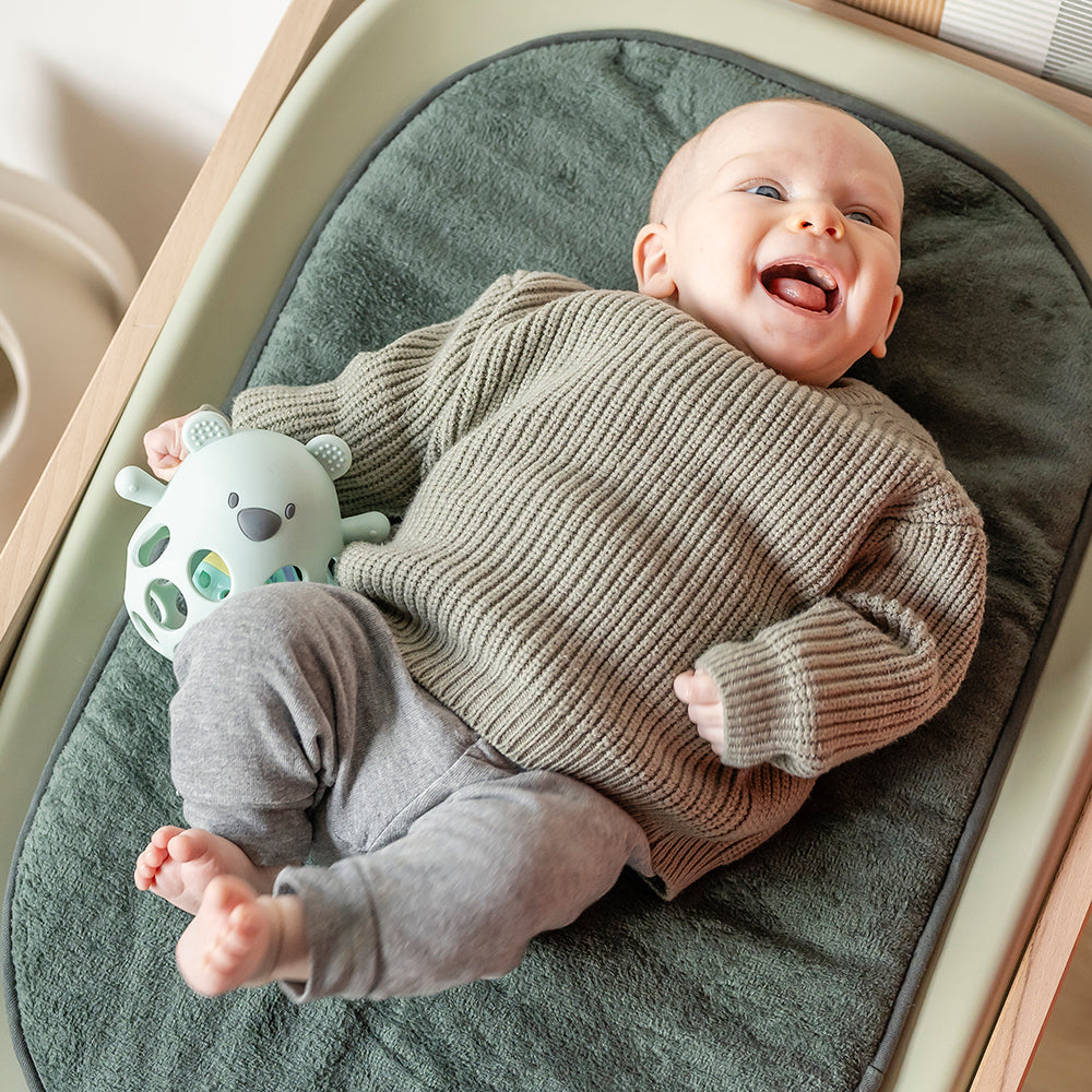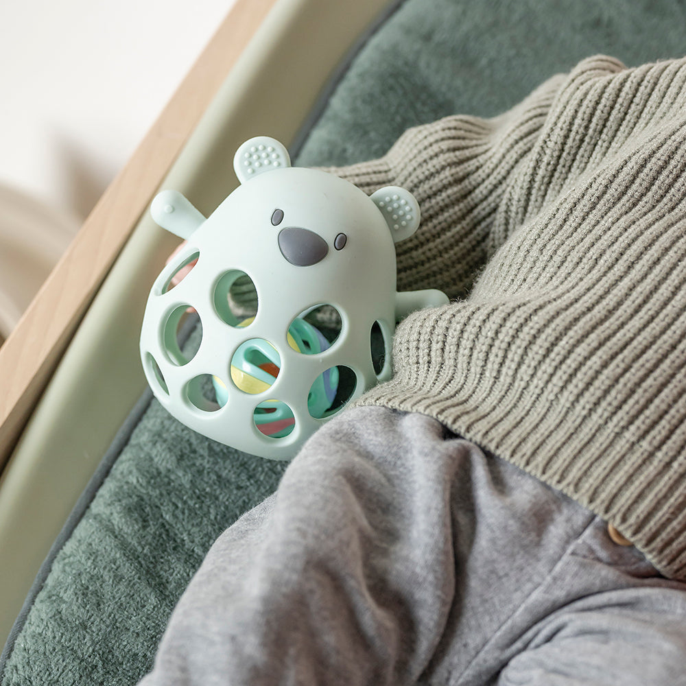 Nattou - Hochet ours en silicone avec balle - Vert aqua est en rupture de stock et sera expédié dès qu’il sera de retour en stock.