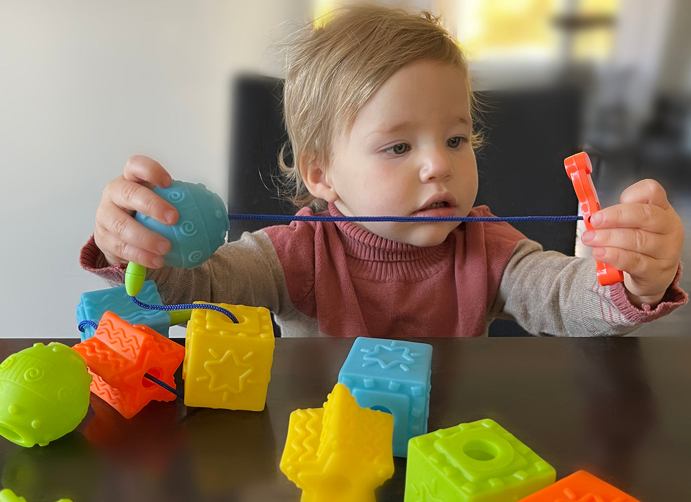 Grâce à la corde équipée d'un embout en plastique astucieusement conçu, le processus d'enfilage devient fluide et accessible, renforçant ainsi la dextérité de l'enfant de manière ludique.