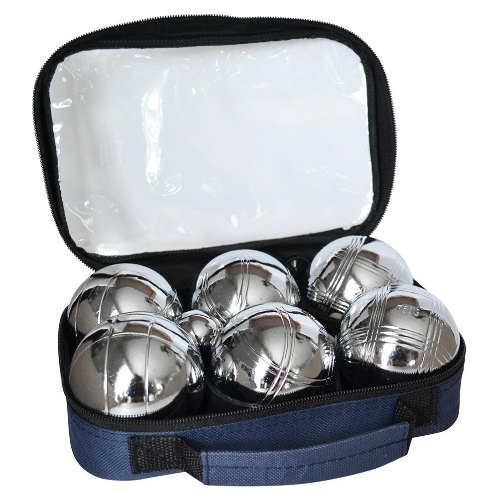 • Comprend: 6 Boules chromées de 750 grammes, 1 cordon de mesure, 2 cochonnets et un sac de rangement.