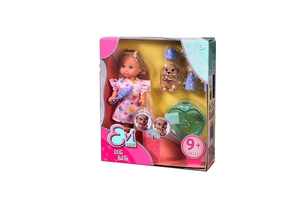 C’est l’heure du bain pour le chiot d’Evi! Le coffret Evi Love Bain du chien comprend une poupée Evi de 12 cm, son chien aux pattes sales, ainsi qu’une baignoire, une serviette et 8 accessoires. Un jeu idéal pour développer l’imagination et apprendre à prendre soin des animaux.