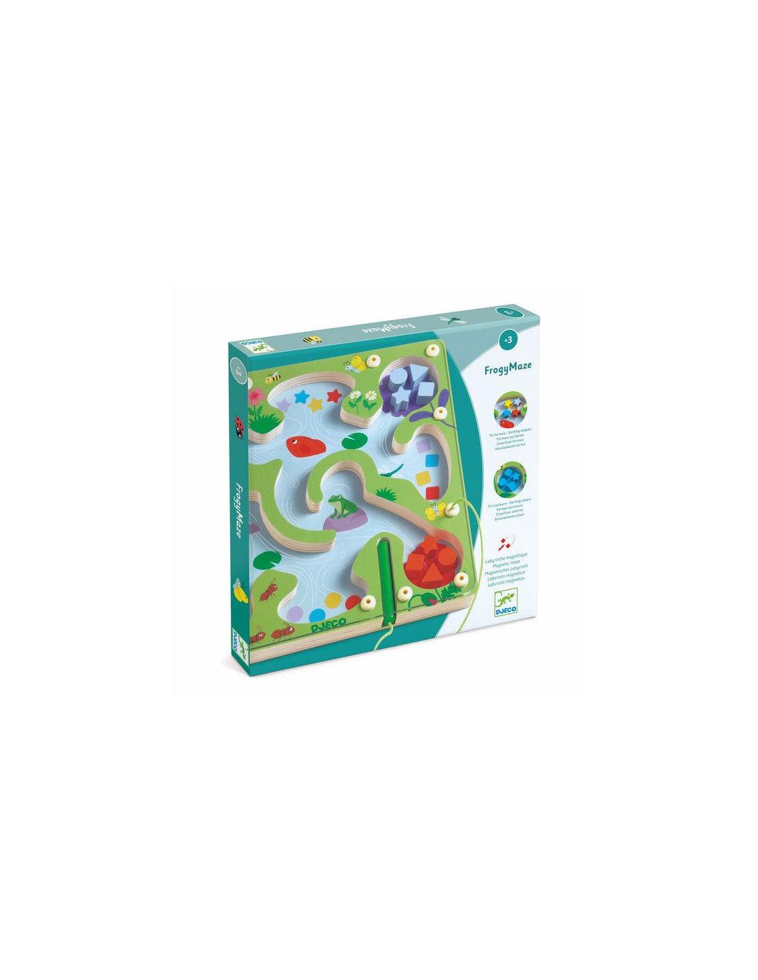 FrogyMaze est un jeu de tri magnétique pour les enfants à partir de 3 ans. À l'aide du stylo magnétique, l'enfant déplace les pièces selon leurs formes et leurs couleurs pour les ranger dans les 8 cases du plateau.