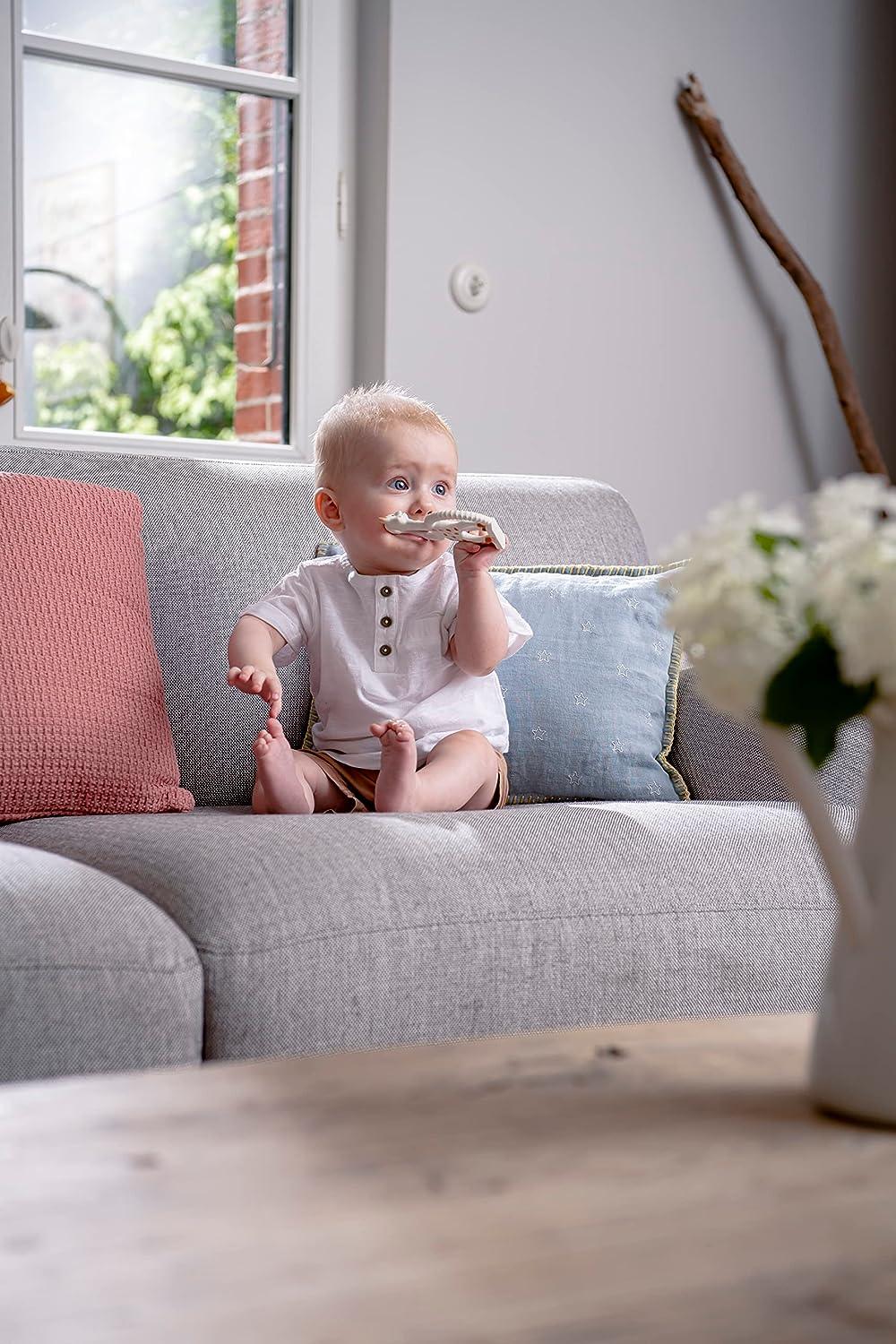 Les deux anneaux présentent des surfaces texturées différentes pour le bébé, en fonction de son âge et de ses besoins, pour un soulagement encore plus rapide des gencives douloureuses.