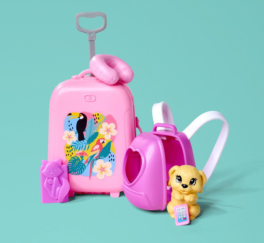 - Accessoires inclus : Valise, sac à dos, petit chien et 4 autres accessoires de voyage.