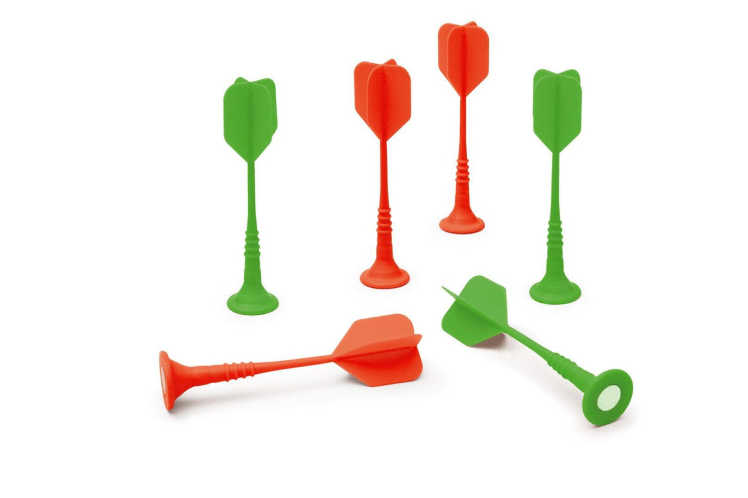Contient 6 fléchettes en plastique et 1 tapis réversible.