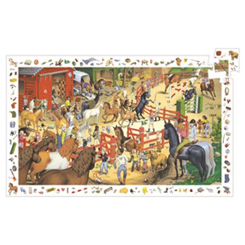Observation puzzle, 200 pieces - Horse Riding. All around a large image, dozens of subjects or objects to discover! Start by assembling the puzzle pieces, then have fun finding the elements from the border in the central image.