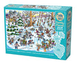 This family puzzle includes 350 pieces of different sizes. The large pieces, perfect for children, are on one side. Medium-sized pieces are in the middle and small pieces are at the other end.