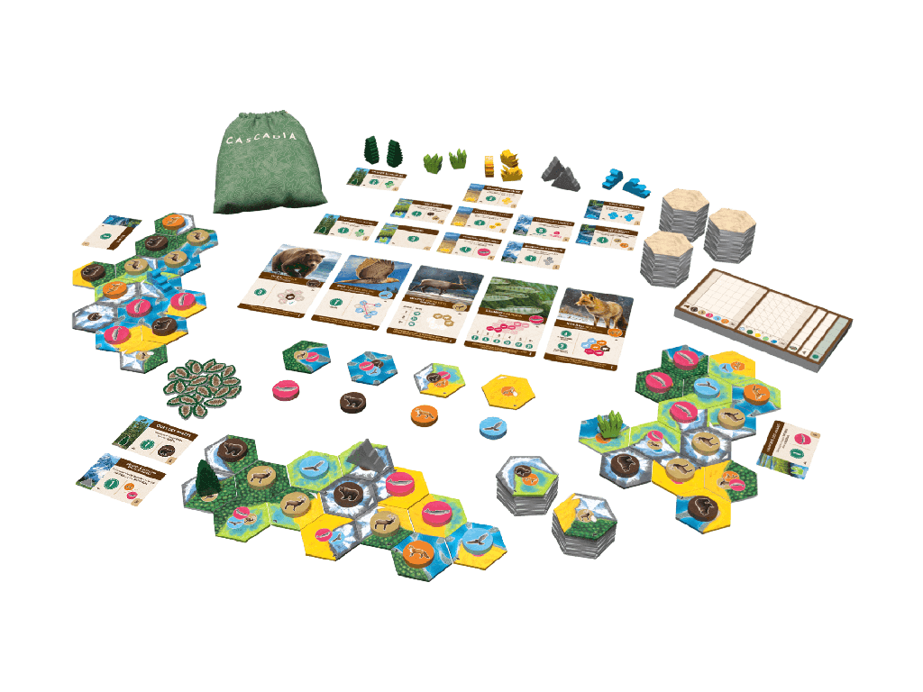 In this expansion for Cascadia, players attempt to create large sets of habitats to place magnificent landscapes. Each of them makes your environment unique compared to those of your opponents and gives you bonuses at the end of the game! In addition to the Landscapes module, this expansion contains new Wildlife Count cards and Habitat tiles that diversify your games and allow you to enjoy Cascadia with up to 6 players!