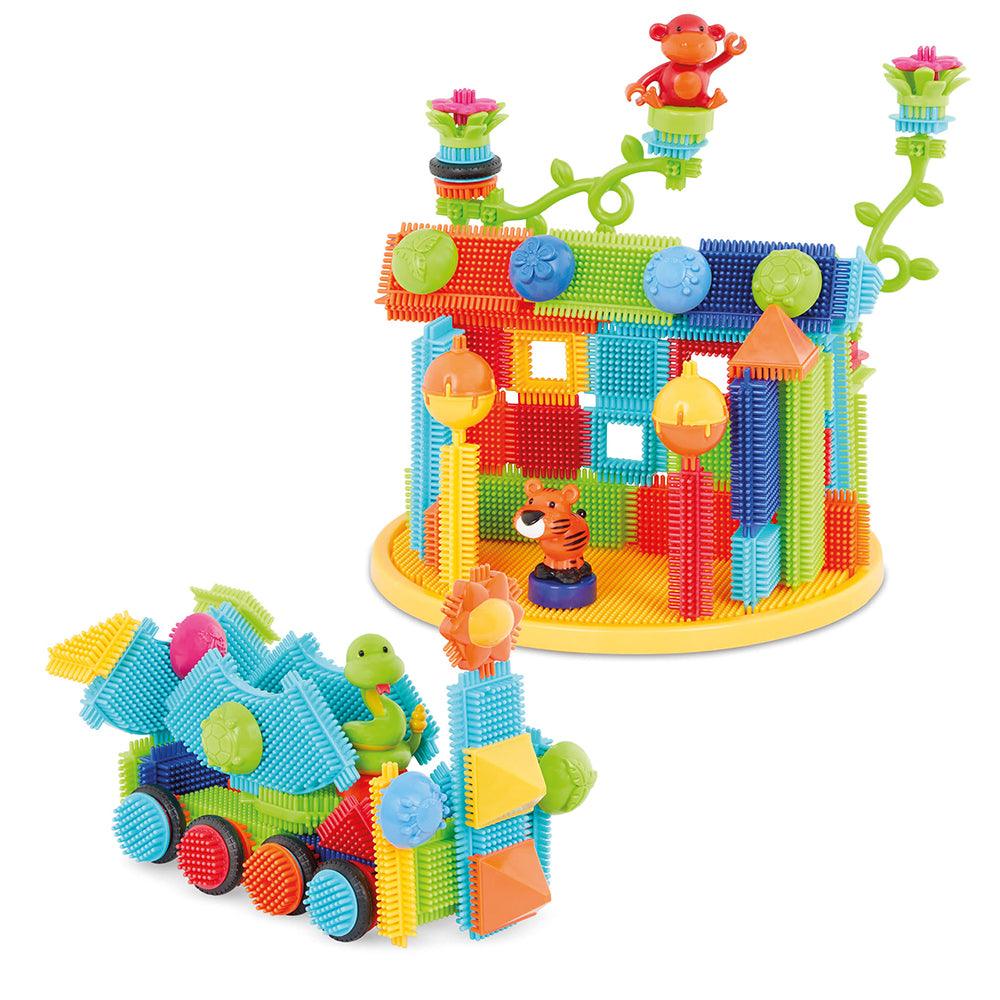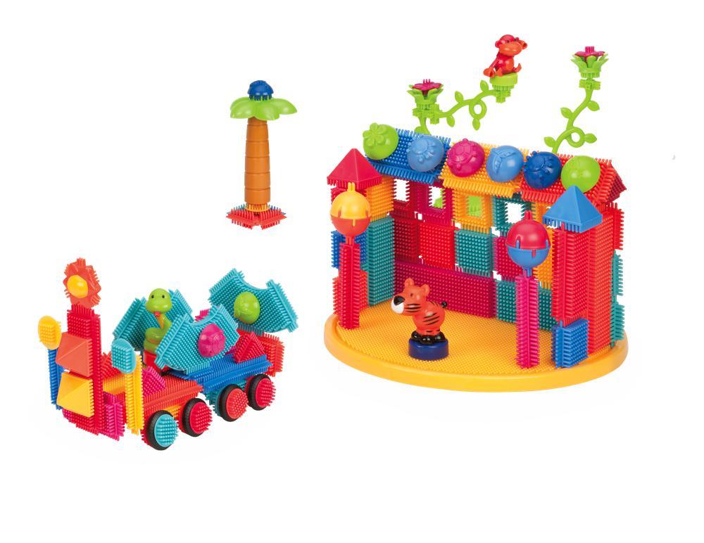 The colorful Bristle Blocks® are easy to fit together and allow you to create unique constructions or reproduce the examples on the box.