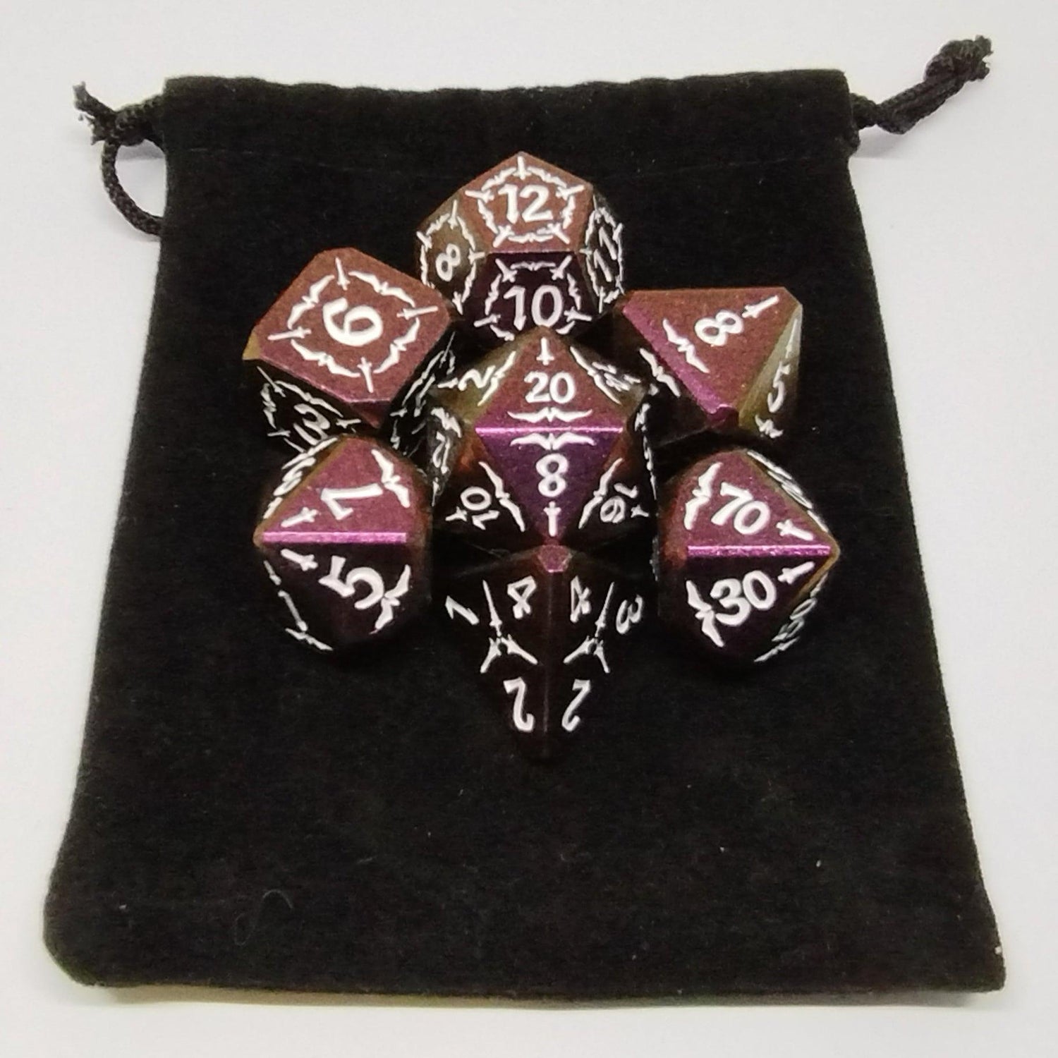 Vampiric War Squad Dice - Purple Gothic Metal with Black Suede Pouch