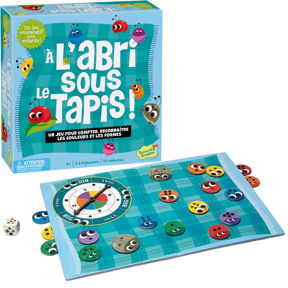 In turn, spin the spinner and find the matching insect, then slide it under the carpet before the three stink bugs get in. Each level adds a new challenge. Work together to find those matches, and you'll all win!