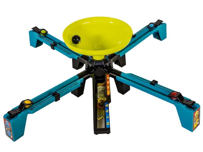 The game Beat the 8 Ball is a game of patience and skill. Once the black ball is set spinning in the funnel, each player must decide when to release their own ball.