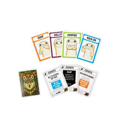 Each card corresponds to an action and a word. Lay out a line of cards and take turns interpreting and reciting each card. Add "coyote" cards to sabotage other players and make the game more difficult. One mistake in the sequence and you're out of the game. The last player standing wins! Unleash your inner trickster with a fast-paced, chaotic game that's different every time you play.