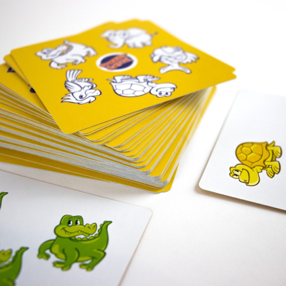 2. Flip cards from the deck until two cards share a common feature with the central card.
