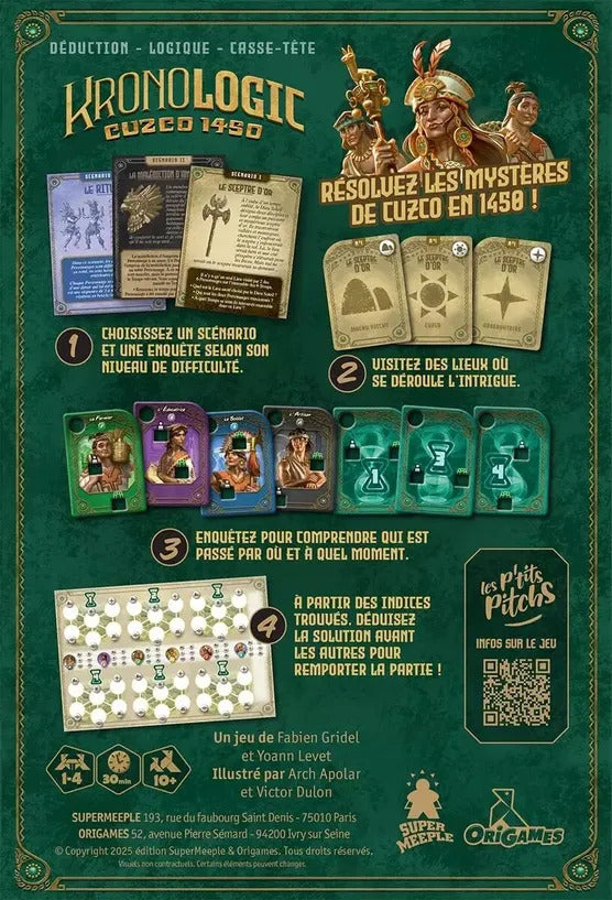 Solve the mysteries in Cuzco, 1450. Investigators, it's up to you to unravel a series of unexplained mysteries that all took place in Cuzco, Peru. Each of the investigations, varying in complexity, will test your insight and logical deduction skills. Who? Where? When? Your goal is to solve each mystery before the others and restore the truth.