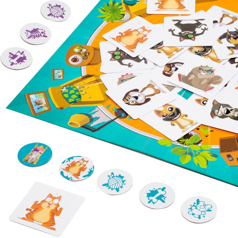 Once the owners have left, the way is clear to try to snuggle up in the cozy beanbag in the living room. Who will reach it and reign supreme? Form your team before the others and challenge your opponents. To activate your Hairballs, find the cards that are identical to your tokens. Project these tokens onto the lounge board to get closer to the best place: the Beanbag!