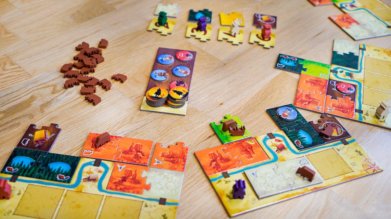 In this game which uses the mechanics of Kingdomino, make your own dominoes with puzzle pieces.