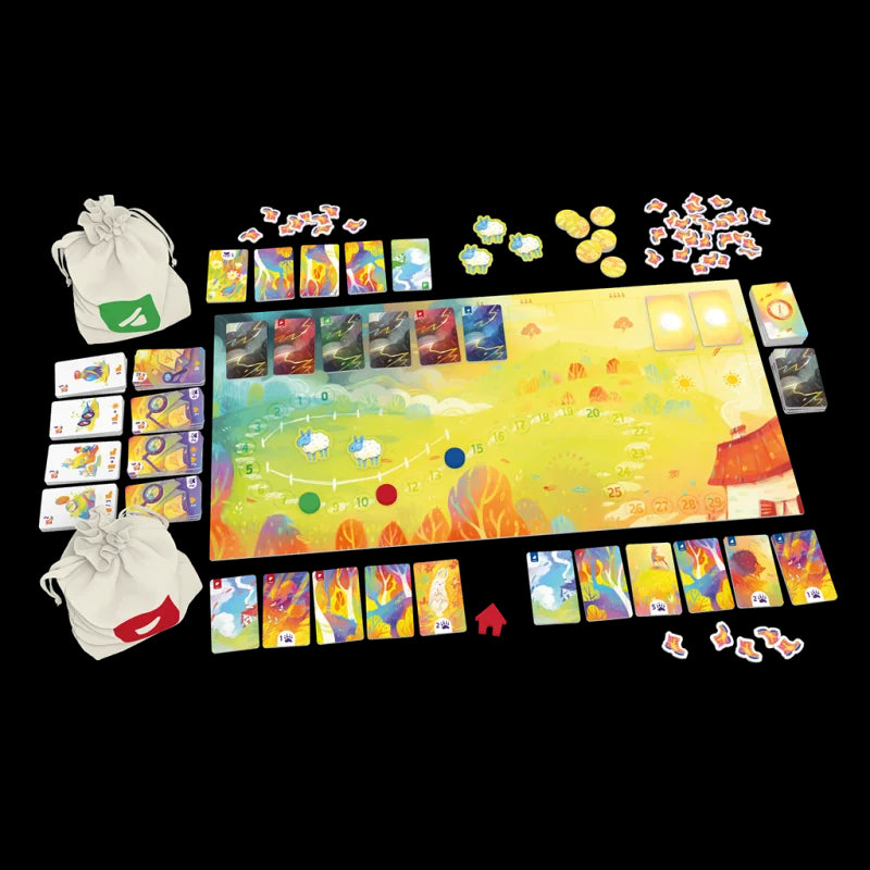 Create your walk by drawing tiles from your bag. Add some new ones too. Which ones will you slip in? The choice is yours: useful objects, beautiful landscapes to visit or animals to observe? Choose the ones you add to your bag carefully for the best chance of scoring points. But keep an eye on the weather, so you can get back to the refuge before the storm hits!