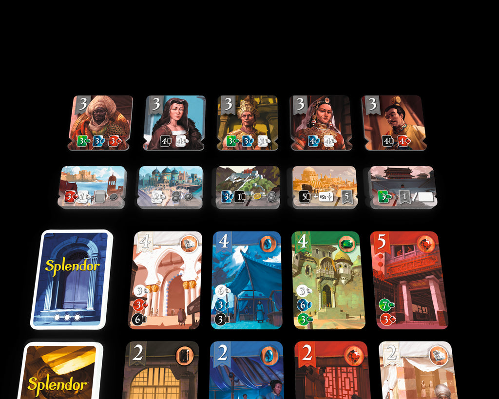 Two modules to enhance your Splendor game. Dominate trade within cities and discover new victory conditions for each game. Create trading posts and take advantage of their unique powers to maximize your prestige.