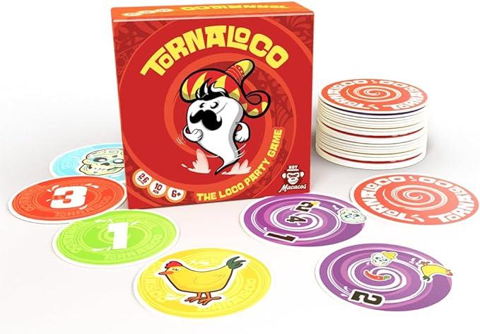 Tornaloco is a game that combines speed and memory. The aim of the game is to win as many tornado cards as possible. Each tornado card has a sequence of 1 to 4 images starting from the centre of the spiral and ending on the outside of the card. To win, you must be the first player to arrange your personal cards in the order indicated by the central card.
