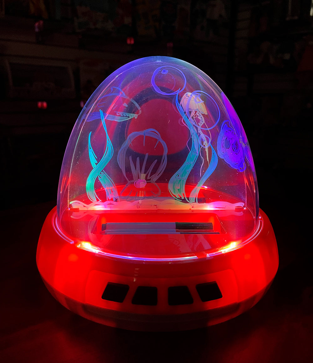 Crée des scènes étonnantes à deux couches qui brillent et tournent avec le Dôme lumineux Crayola. Dessine l'image principale sur le panneau central et le reste de ta scène sur la surface extérieure du dôme. Ensuite, allume les lumières, choisis la vitesse de rotation et la luminosité, et regarde ta scène prendre vie dans un mouvement lumineux époustouflant!