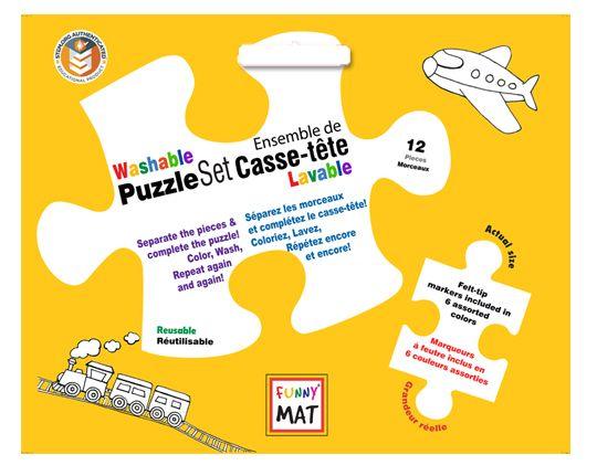 - Once assembled, the puzzle can be colored with washable markers, washed and then colored again and again