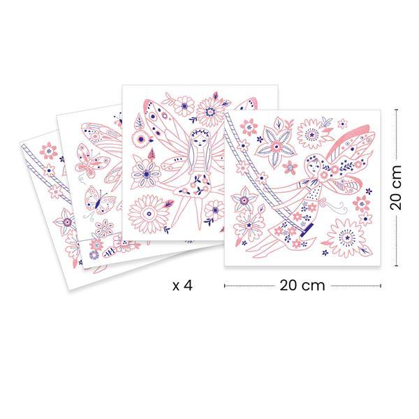 This pouch offers a coloring activity to escape for a magical stroll in fairyland. The child colors the 4 paintings decorated with a golden varnish. Practical, the embossed gold circles make coloring easier: they guide the tip of the marker to avoid sticking out!