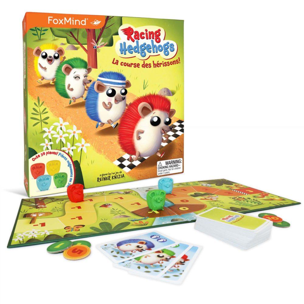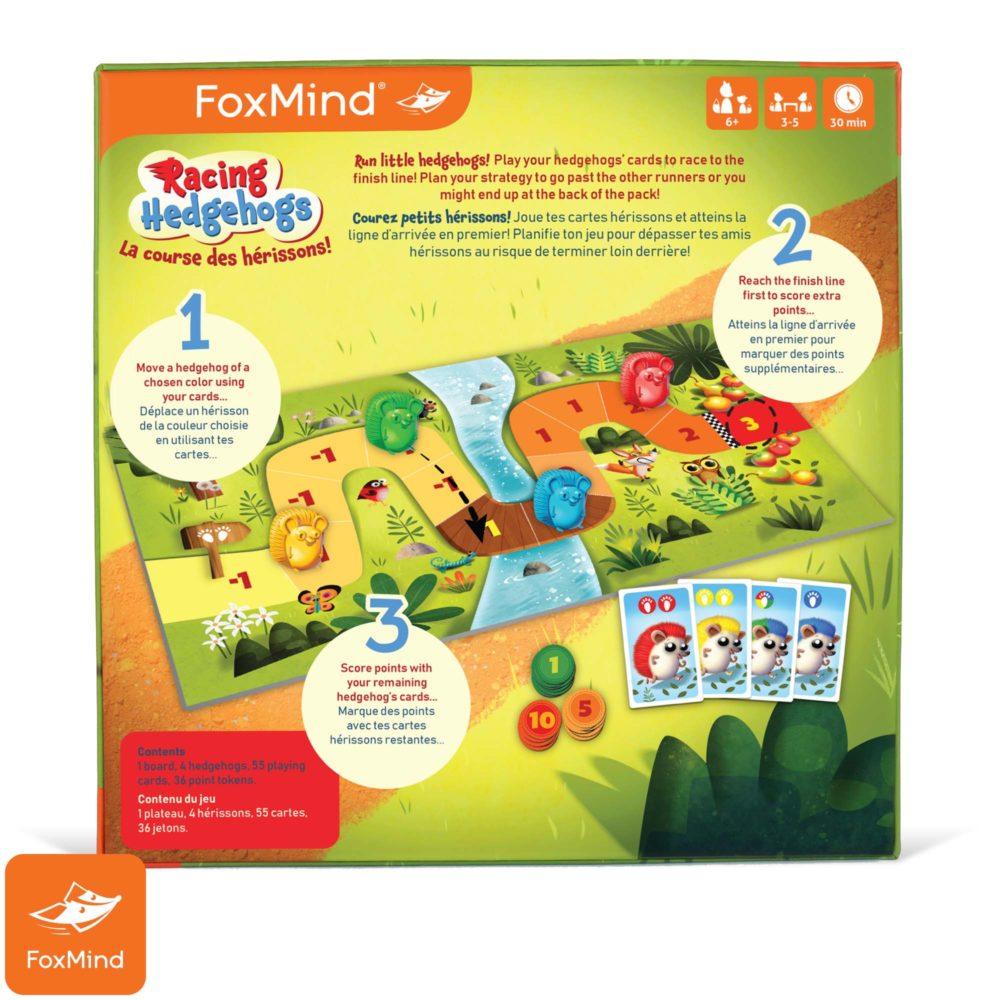The race is on! Participants play cards to move the hedgehogs forward. When a hedgehog crosses the finish line, the race ends and players score points with the remaining cards in their possession. Players must both play cards that will move their favorite hedgehog forward while retaining their best cards to maximize their points. What will your strategy be?