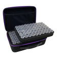120 clear jars in an attractive zippered case. Each bottle holds a good quantity of diamonds. The case is sturdy and lightweight, making it easy to carry. The zipper is of high quality. You'll find a net in the case to store your diamond embroidery accessories, such as pens, trays, tweezers, etc.
