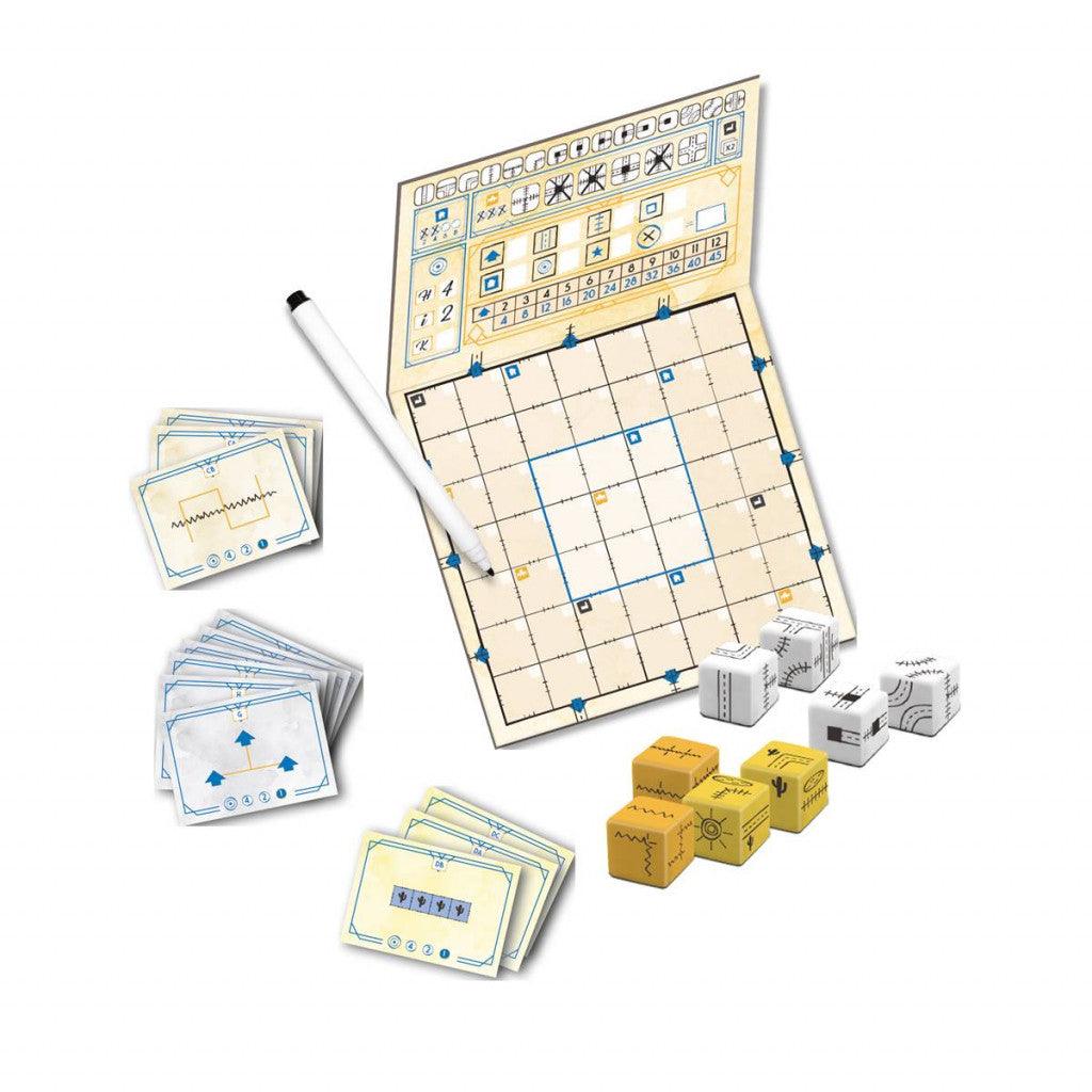 Grab a board and a dry-erase marker, and get ready to reach network nirvana! Roll the dice and draw routes to connect the exits around your board. Expand your network with railways, motorways and stations to collect points, but you'll be penalised for any unfinished connections, so plan well!