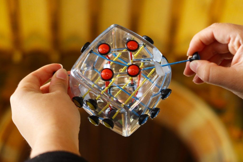 The mystery of the Brainstring Original lies not only in how to untie a tangled "knot" of strings in the center, but also in the fact that all of its strings can be interchanged—WITHOUT ever creating a knot! Four groups of different colored strings, four strings per group, moving up and down and around the six faces of a polycarbonate shell… Beyond simply tying or untying a knot, what beautiful symmetries can you create? Brainstring Original isn't just a puzzle—it's a work of art.