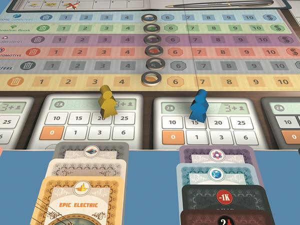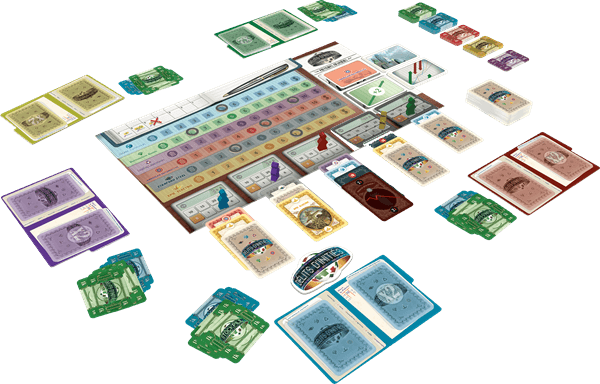 Délits d'initiés (Stockpile) is an economic board game that combines the traditional strategy of stock ownership (buy low, sell high) with several additional mechanisms to create a fast-paced, engaging and interactive experience.