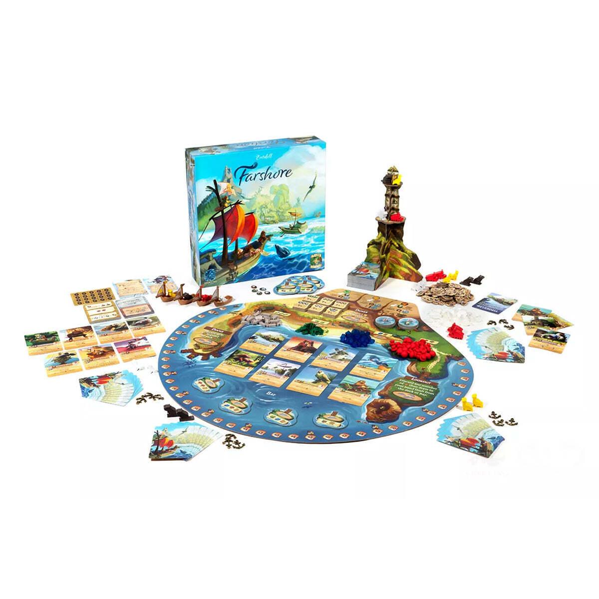 Welcome to Everdell Farshore, an indie game set in the land of Farshore. Through each season, you lead a team of workers to build a thriving city and explore the enchanting ocean. You must carefully plan your actions to build and navigate, because only adaptation will allow you to succeed. The wind is strong. The sun breaks the horizon. It's time to weigh anchor for adventure!