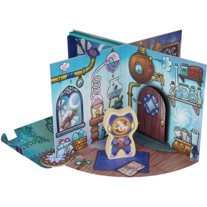 L'Histoire qui Pop : L'École de la Lune fait partie d'une gamme de jeux narratifs, coopératifs et captivants pour les enfants dès 4 ans, basé sur l'expression, co-créé avec le studio de design MEIZOU, qui invitent les joueurs à créer ensemble des histoires uniques.