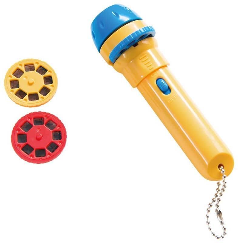 Insert a disc in the lamp and turn it on. That's all there is to it. Project images on wall or ceiling. Simply turn the disc with your fingers to move on to the next image. Narrate the adventures of the illustrated characters.