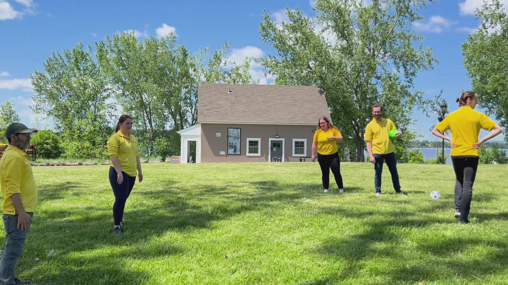 Back yard gamers and newbies alike can pick up Bamzball quickly. Like basketball, teams alternate possessions and try to throw the ball through the ring to score. Think of it as Quidditch for Muggles!
