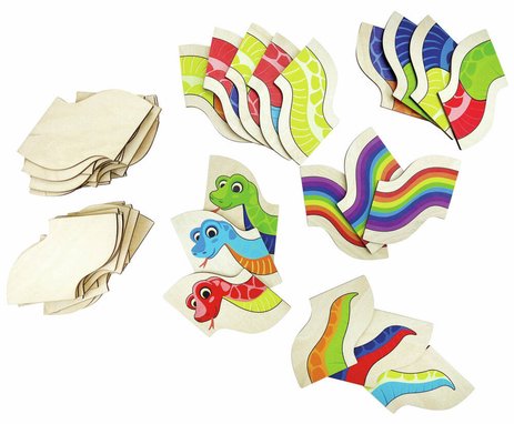 The fun, colorful snake domino is already fun for little ones. The aim is to arrange the wooden cards in matching colors and be the first to get rid of all the wooden cards by arranging them on the snakes. Long, colorful snakes can be created, and color recognition is playfully encouraged.