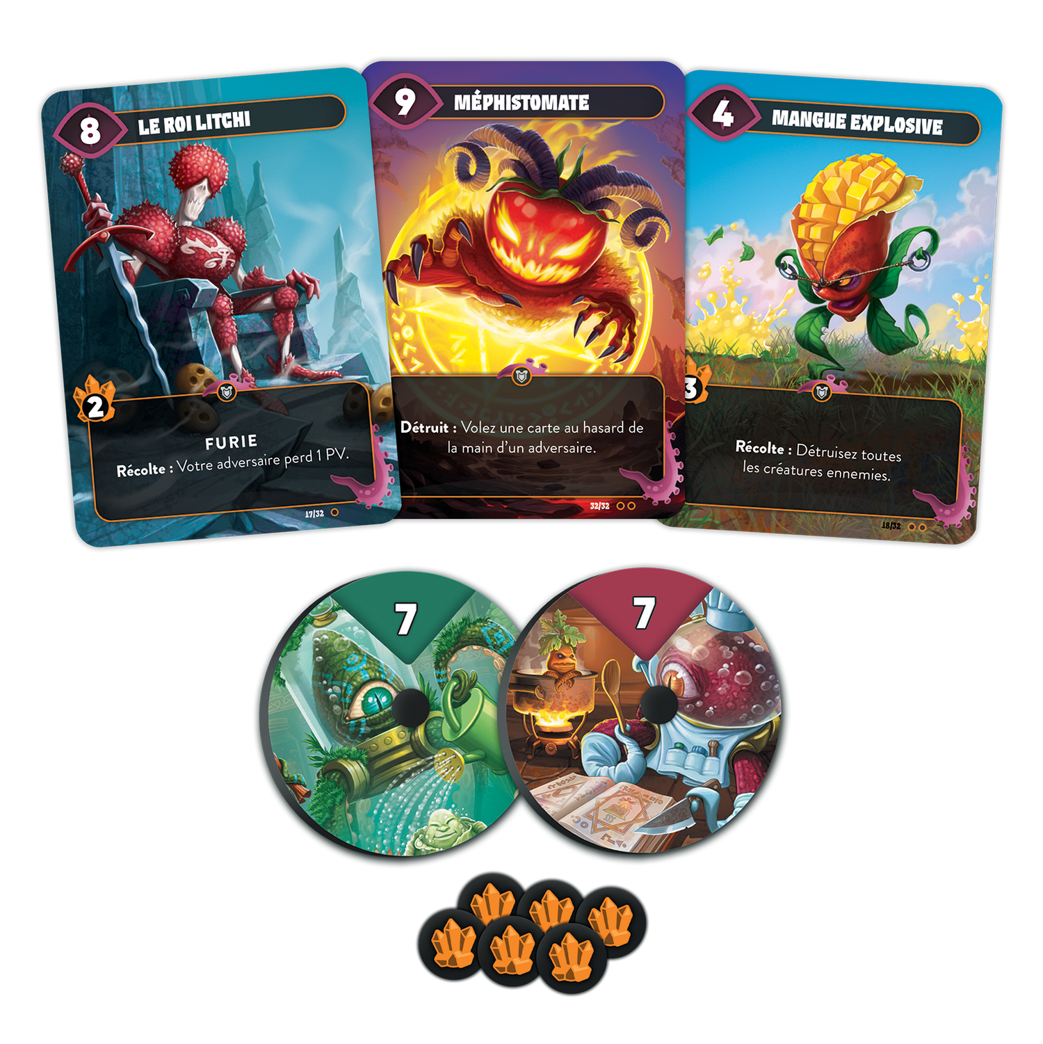 Plantez vos créatures fruits et légumes, protégez-les de vos adversaires et récoltez leurs folles capacités. Et comme toujours, même s’il est un standalone, Mindbug : Bataille de Fruits Royale peut être joué de manière indépendante ou associé avec d’autres jeux Mindbug.
