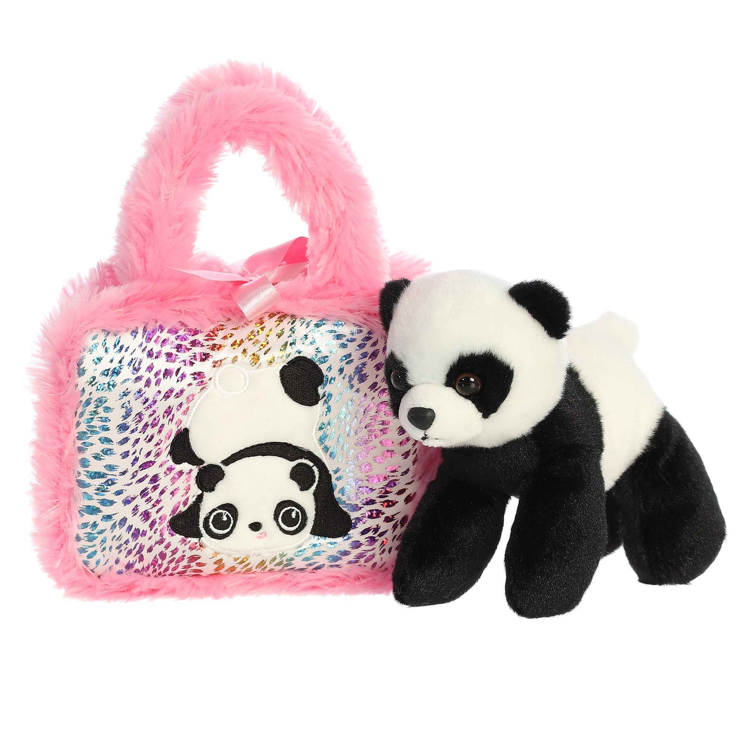 Immerse yourself in the captivating world of Aurora's Fancy Pals, where plush animals and elegant baby carriers merge in a fashion-forward collection. This enchanting range includes charming creatures such as kittens, pandas and unicorns, housed in beautiful carrier bags, allowing for endless storytelling and imaginative play.