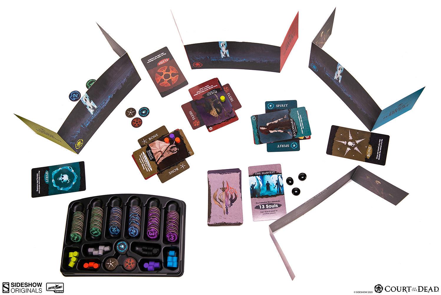 Set in Sideshow's original dark-fantasy world, Court of the Dead: Dark Harvest, is a strategic bidding game for 3-6 players, in which each player is vying for power in the Court of the Dead and struggling to save as many souls as possible from annihilation in the Celestial War.