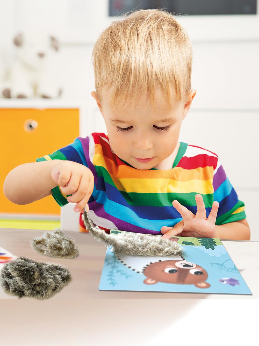 This is a great way to help children develop their creativity and hand-eye coordination. With the wool provided, children will dress animals with beautiful fur by lacing the wool through the holes in the card. Children will learn to follow a pattern and thread the wool through the holes to create their own unique work of art.