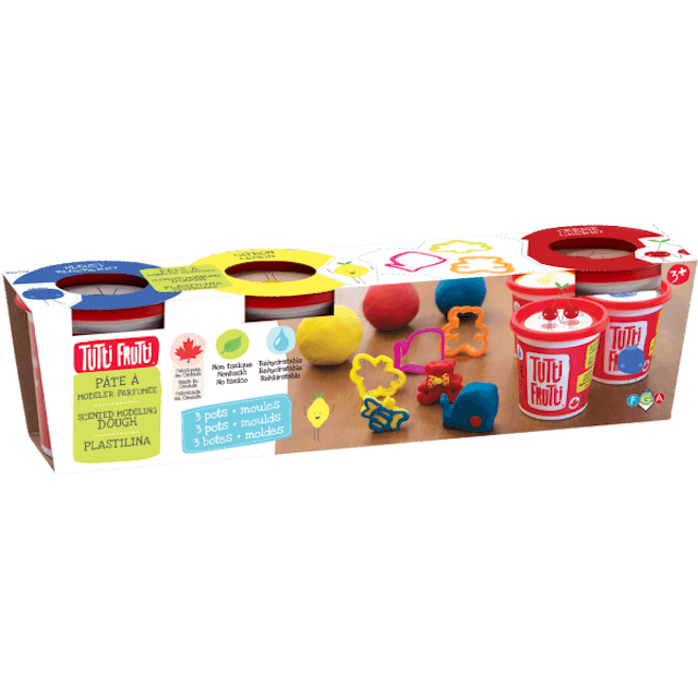 With 3 vibrant colors and fragrances and 3 fun molds - teddy bear, whale and tree, this set is designed to awaken children's enjoyment of modeling clay. Tutti Frutti modeling clay is easy and fun to use, non-toxic and rehydratable. It's the ideal set for your first creations!