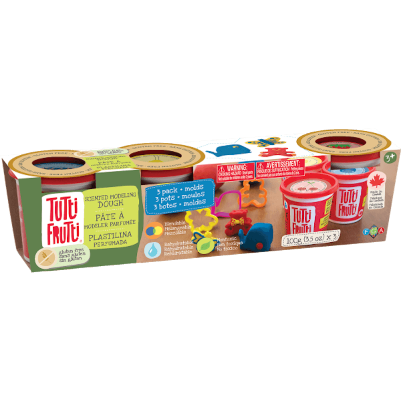 Tutti Frutti gluten-free dough features real fruit and candy flavors in a range of bright colors. Tutti Frutti is non-toxic, water-based, rehydratable and won't stick, stain or crumble. Mix any combination of doughs to create new colors and scents. Creative activities build confidence, develop motor skills and exercise the imagination. Ideal indoor activity for snowy or rainy days. For individual quiet time or group play.
