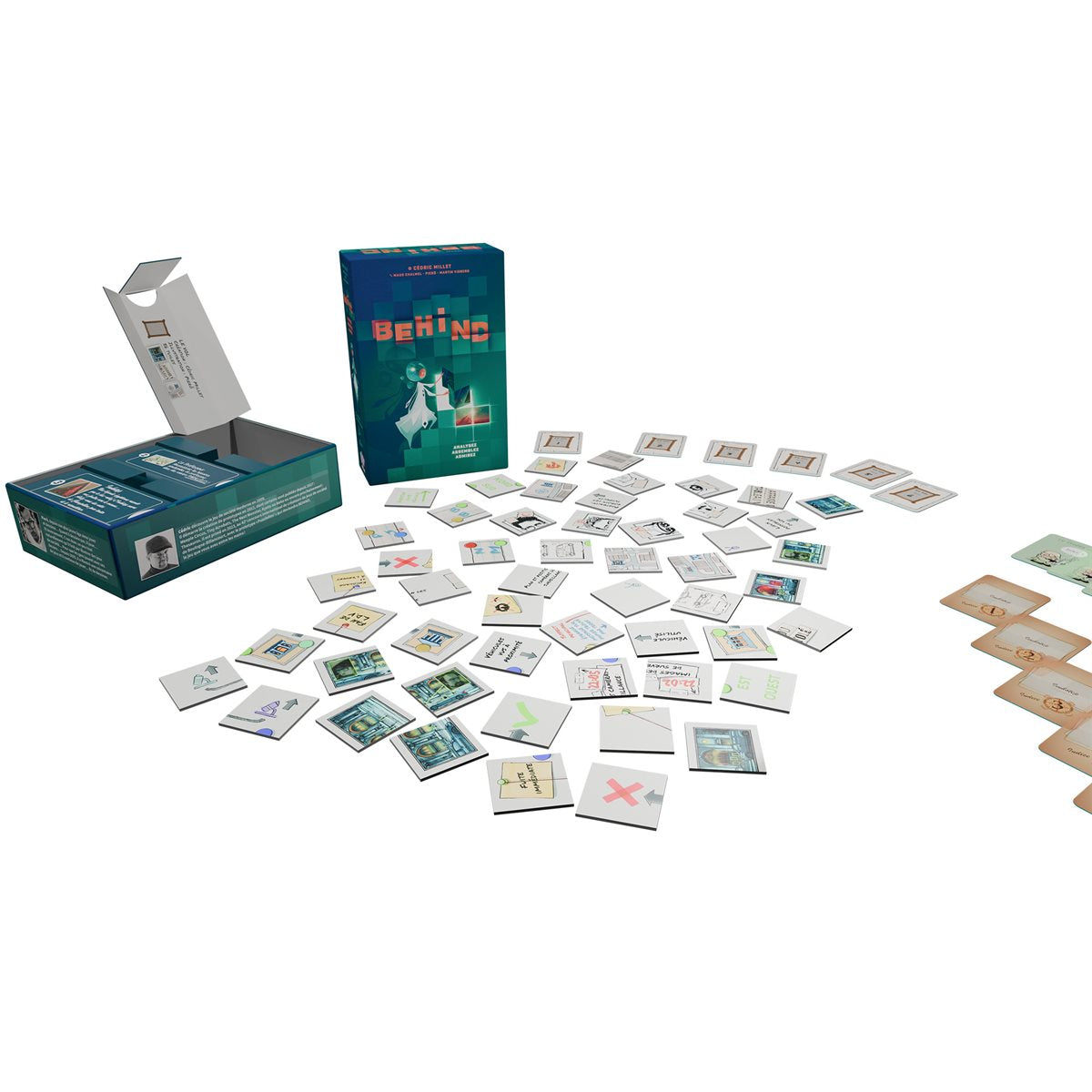 Analyze, assemble, admire—in Behind, you'll find three scenes to solve, each with its own mechanisms and puzzles. Observe the tiles laid out before you, then assemble them logically and flip them over to admire the result on the back! Six clue cards are available for each scene and must be turned over in numerical order. The scenes in the box are: