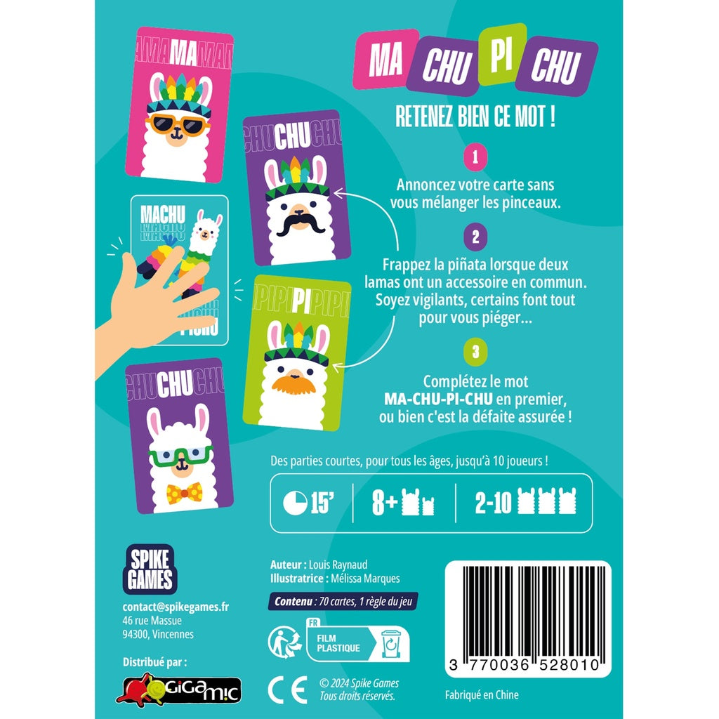 Be the first to get rid of all your cards to win. Win duels by hitting the piñata when your llama and an opponent's llama have a matching accessory. Listen carefully to the other players, because a MA-CHU-PI...CHU sequence could turn the game around!