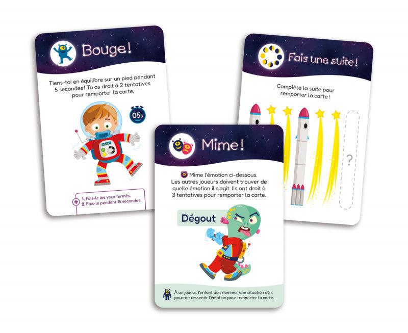 L'attente filante 1 is a card game for children aged 3 to 6, in which players complete all kinds of fun challenges requiring a variety of skills. The game is designed to turn waiting situations into fun!