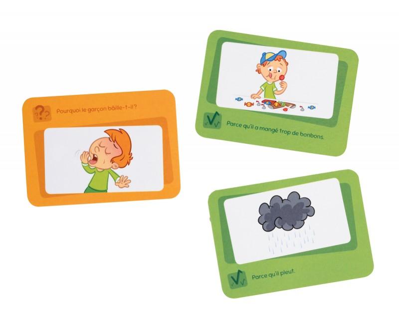 Pourquoi les Carottes ont-elles Disparu? is designed to help children aged 3 to 5 and a half develop their understanding of questions formulated with the interrogative word "why". Illustrated question-and-answer cards enable them to validate their own answers.