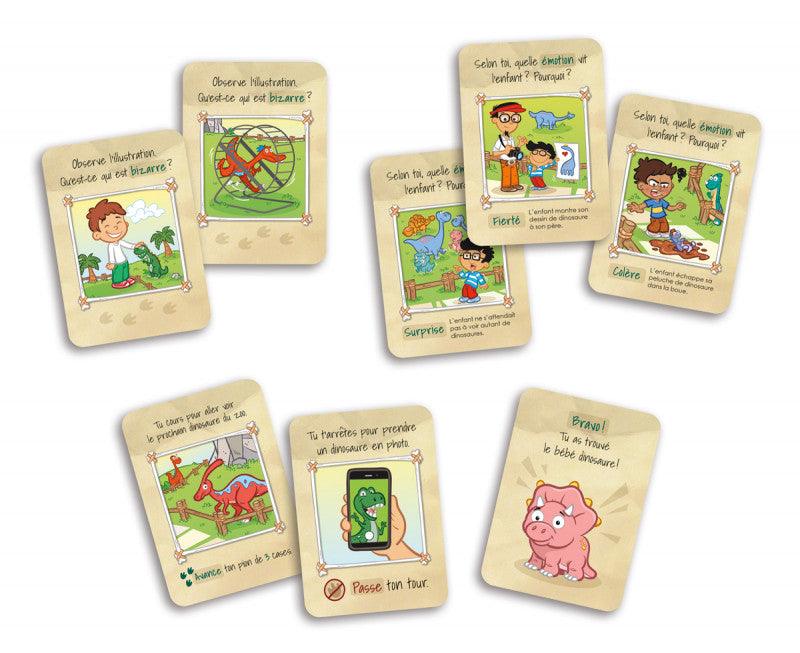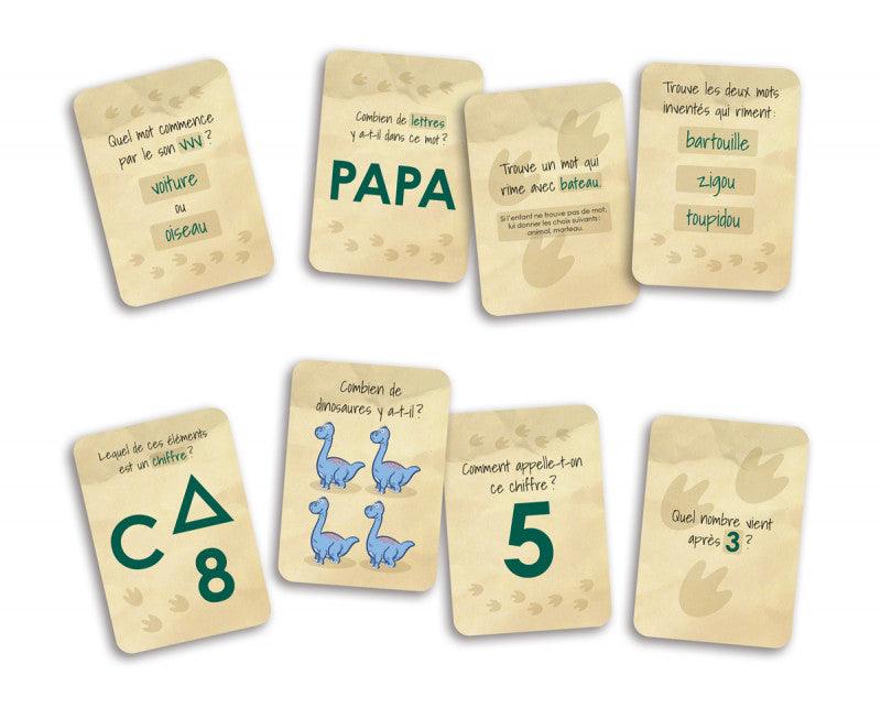On a mission among the dinosaurs was designed to support the overall development of children aged 4 to 5½ years. In this educational game, the child seeks in particular to recognize emotions and their causes, to describe orally bizarre situations experienced by dinosaurs, to recognize the numbers from 0 to 10 and some letters of the alphabet, as well as than becoming aware of the sounds that make up words.