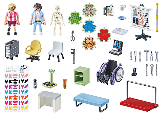 Take care of your patients with the PLAYMOBIL Physiotherapist, including two PLAYMOBIL characters, wheelchair, footrest and other accessories.