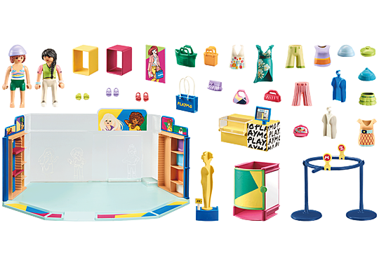 Includes two characters, a boutique with fitting room, several outfits and bags.Ages 5 and up71534